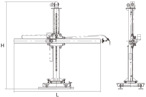 可選配:1、電動/手動移動臺車 2、電動/手動十字微調(diào) 3、載人座椅或平臺 4、焊縫指示 5、監(jiān)視系統(tǒng) 6、焊劑輸送回收系統(tǒng)